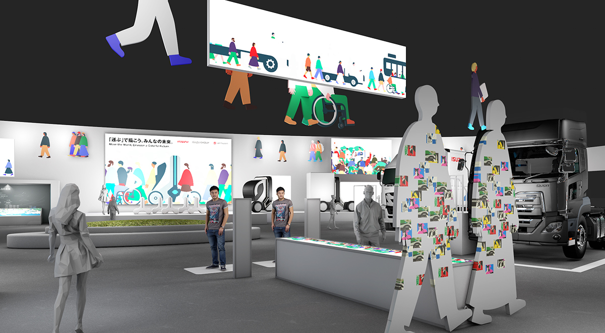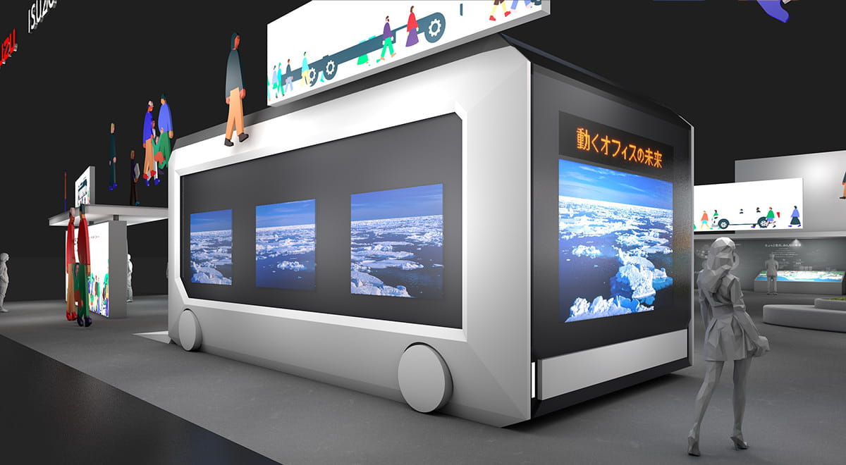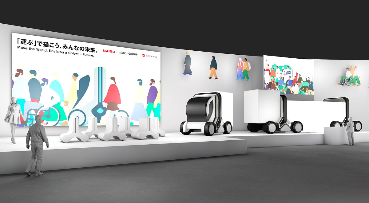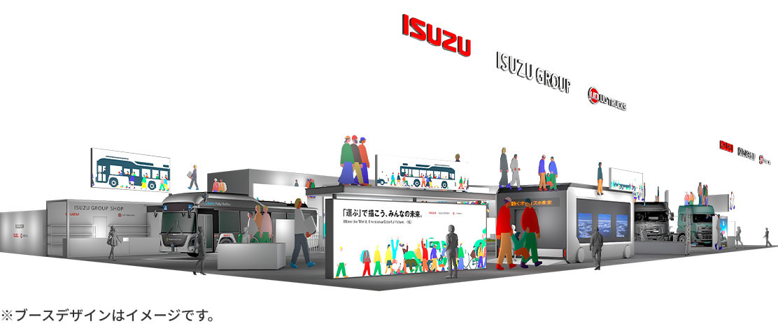 今回のブースでは、いすゞグループが「運ぶ」で描く、自由で多彩な、みんなの未来を表現します。