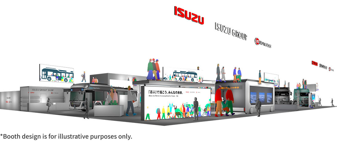 The theme of the Isuzu Group booth is “Move the World, Envision a Colorful Future.” In line with our purpose of Moving the World – for You, we will showcase diverse mobility solutions for a better world.