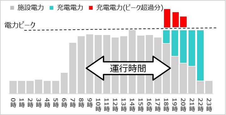- 電力使用量の予測に基づく、施設デマンド超過抑制を考慮した充電計画の策定