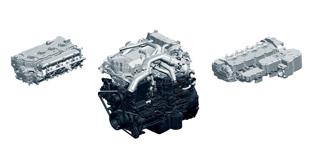 マルチフューエルエンジンは従来のディーゼルエンジンとシリンダブロックやクランクシャフトなどの主要部分を共通化。点火システムや噴射システムなどを燃料ごとに変更するだけで、軽油はもちろん、天然ガス、水素、バイオ燃料、合成燃料などのCN燃料に対応することが可能となりました。
