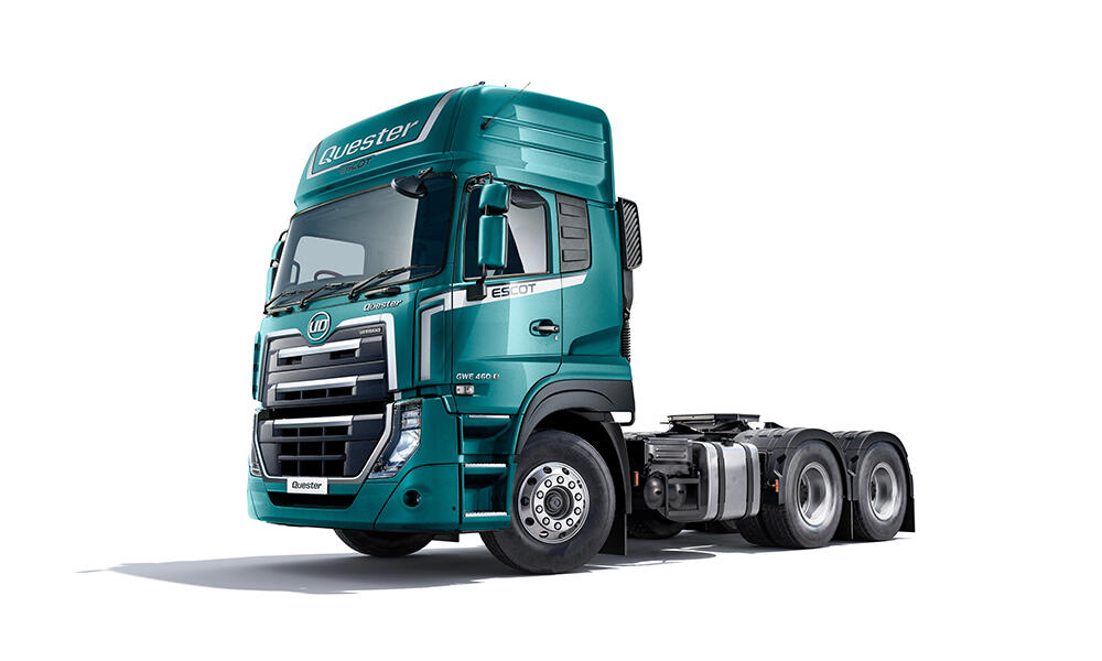 人にも積荷にもやさしい大型トラクタは、ドライバーの誇りとともに社会インフラを支えます。UDトラックス90周年記念パッケージ車を展示します。 - Quester(2026年モデル)[ワールドプレミア/参考出品]