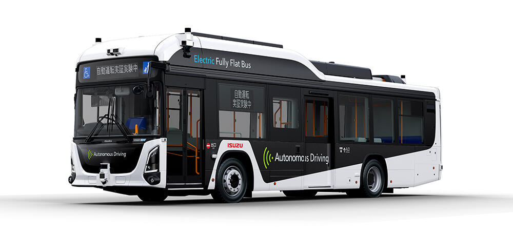 国内初のBEVフルフラット路線バス「エルガEV」をベースに、新たに開発中の自動運転路線バスです。カメラ、LiDAR、ミリ波レーダーなど複数のセンサーによる周囲認識と、各コンポーネントを協調させる車両統合制御技術により、安全かつ安定した自動走行を実現しました。
