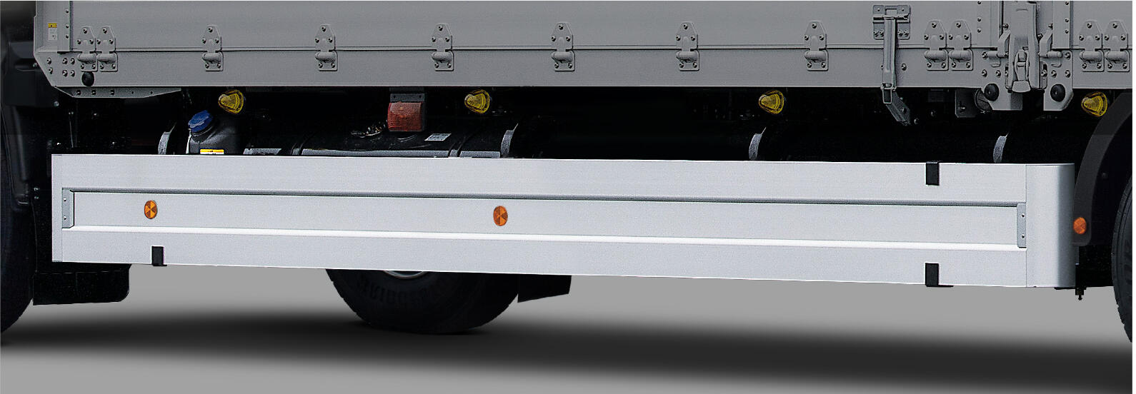 「Gカーゴ」省エネパッケージは、独自設計のサイドスカートやリヤフラップによりすぐれた空力性能を発揮し、燃費改善に貢献します。高積載と高容積を両立するGVW25トン低床3軸車との組み合わせで、さらなる輸送効率の向上を実現します。