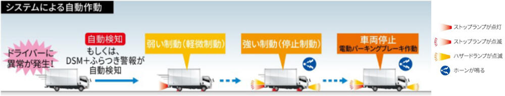 - ・この度のソフトウェアのアップデートでは、健康起因などによりドライバーに異常が発生した際の機能はこれまで通りで変更はありません。