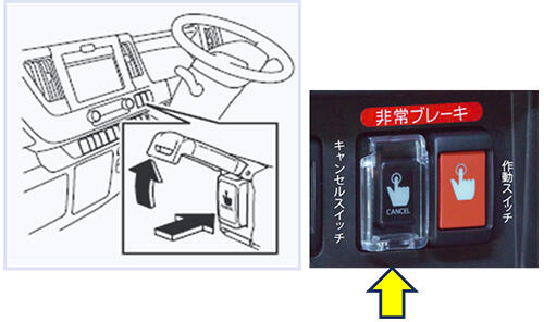 EDSS作動中にキャンセルスイッチを押すと、システムが解除されます。ドライバーが運転を継続できるにもかかわらず、作動した場合は、キャンセルスイッチを押すと通常走行を継続することができます。