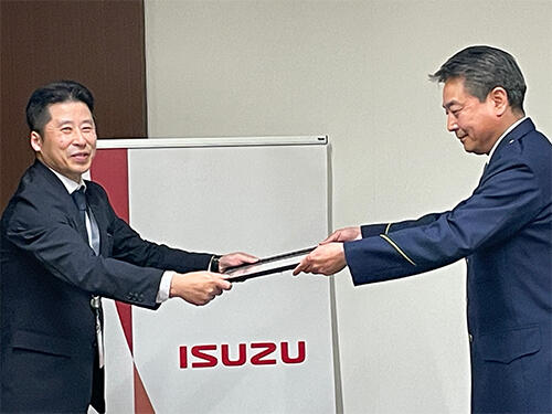 いすゞ自動車株式会社(本社:神奈川県横浜市、社長COO:南真介、以下「いすゞ」)は地域と連携した交通安全啓発活動への継続的な取り組みが評価され、いすゞ本社が立地する横浜市西区全域を管轄する神奈川県戸部警察署より感謝状が贈呈されました。