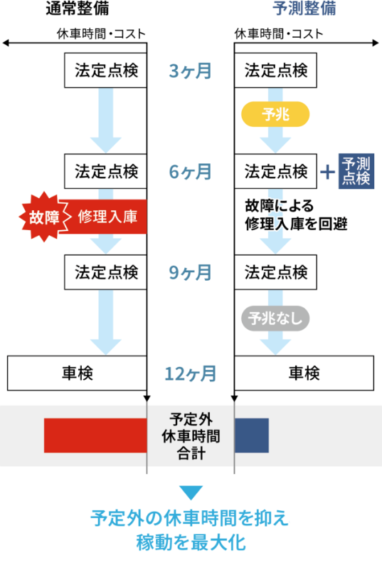 車両に不調が発生する前に、データに基づく適切な整備を施し、車両の安定稼動を支えます。