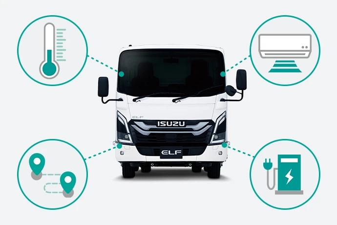 特に早朝稼働や寒冷地での運用が多い企業は、寒さによる走行距離の目減りを踏まえたルートを設計しましょう。なお、エルフEVはバッテリーの温度管理をする「バッテリーサーマルコントロール」を搭載しており、氷点下環境でも安定した性能の発揮・劣化防止にも貢献します。