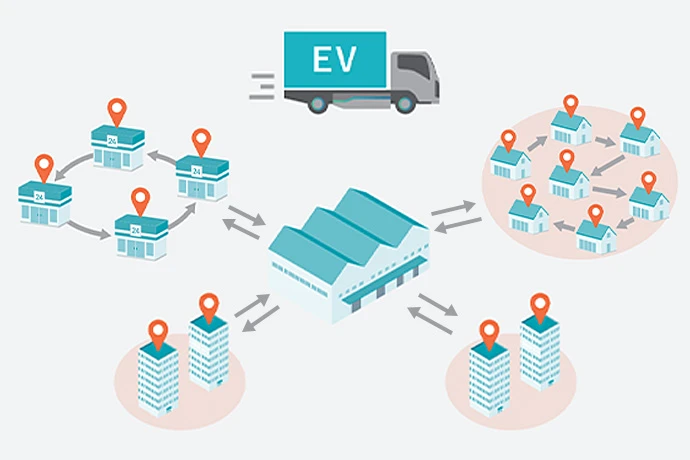 また、いきなり全ての車両を置き換えるのではなく、配送ルートが決まっている「店舗配送」や一定距離を走行し、1-2拠点に荷物を届ける「拠点間輸送」から導入を始めると安心です。ここからはルートと充電サイクルを最適化し、EVトラックを効果的に導入するポイントを解説します。