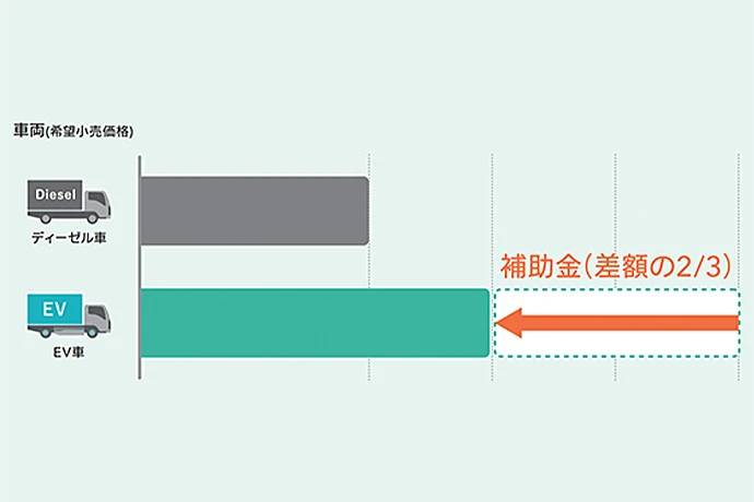 ただし、導入コストについては補助金で抑えることが可能です。たとえば、国の「商用車電動促進事業」の補助金を利用することで、EVとディーゼルの差額の2/3をベースとした金額が交付されます。東京都などの自治体でも同様の制度が見られるため、複数の支援制度を併用すれば、ディーゼル車との価格差を埋められる可能性があります。