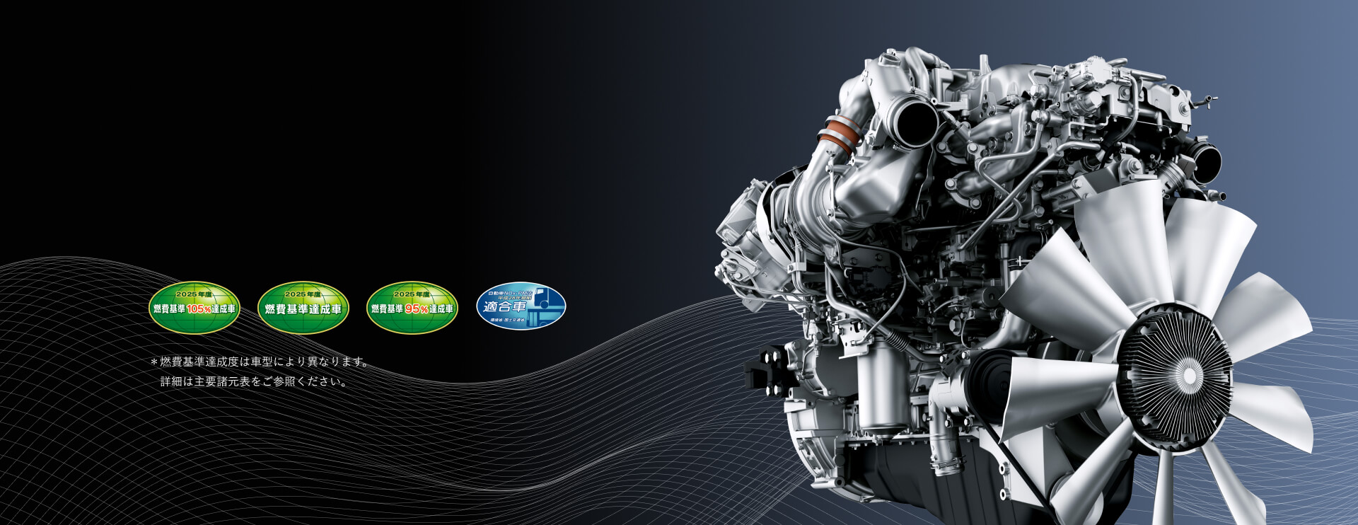 2025年度燃費基準に対応した6UZ1エンジンを搭載。ターボからシリンダーヘッド、インジェクターに至るまでこだわり使用頻度の高い実用回転域での燃費性能を追求し、燃料コスト削減の最大化を追求した低燃費ディーゼルエンジンです。カーボンニュートラルへ向け、環境も考慮した、CO2削減にも貢献する高性能エンジンです。