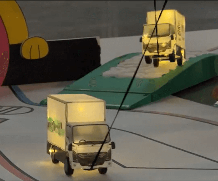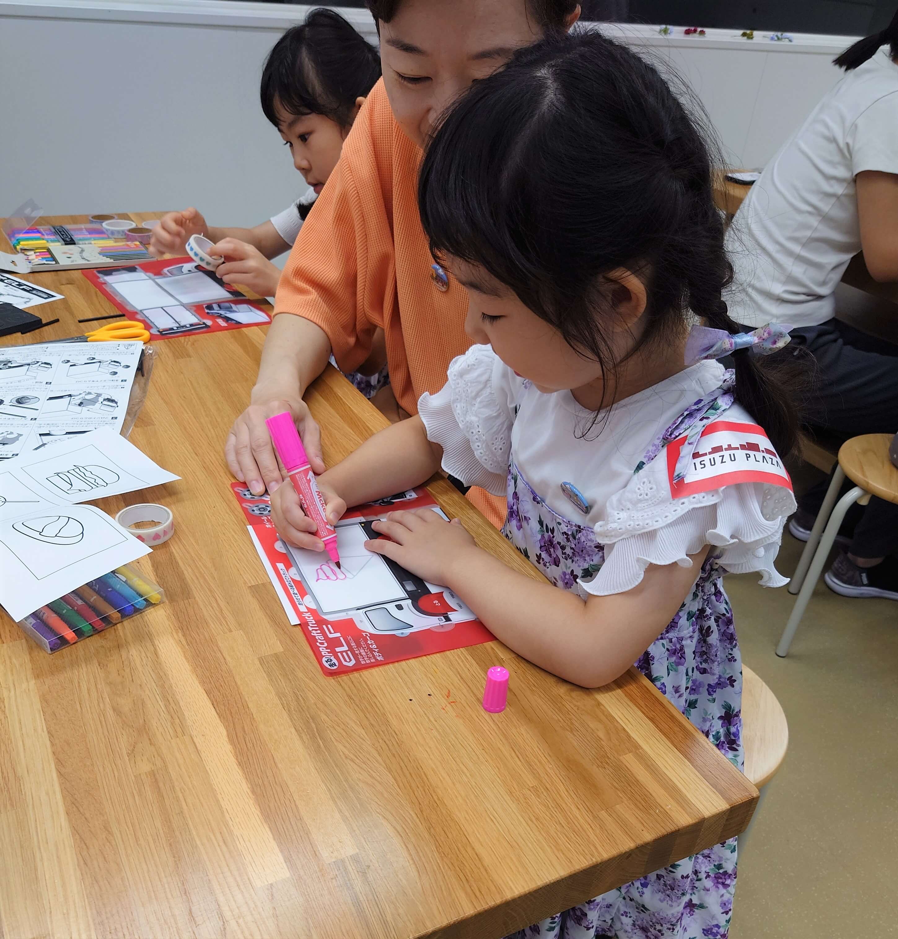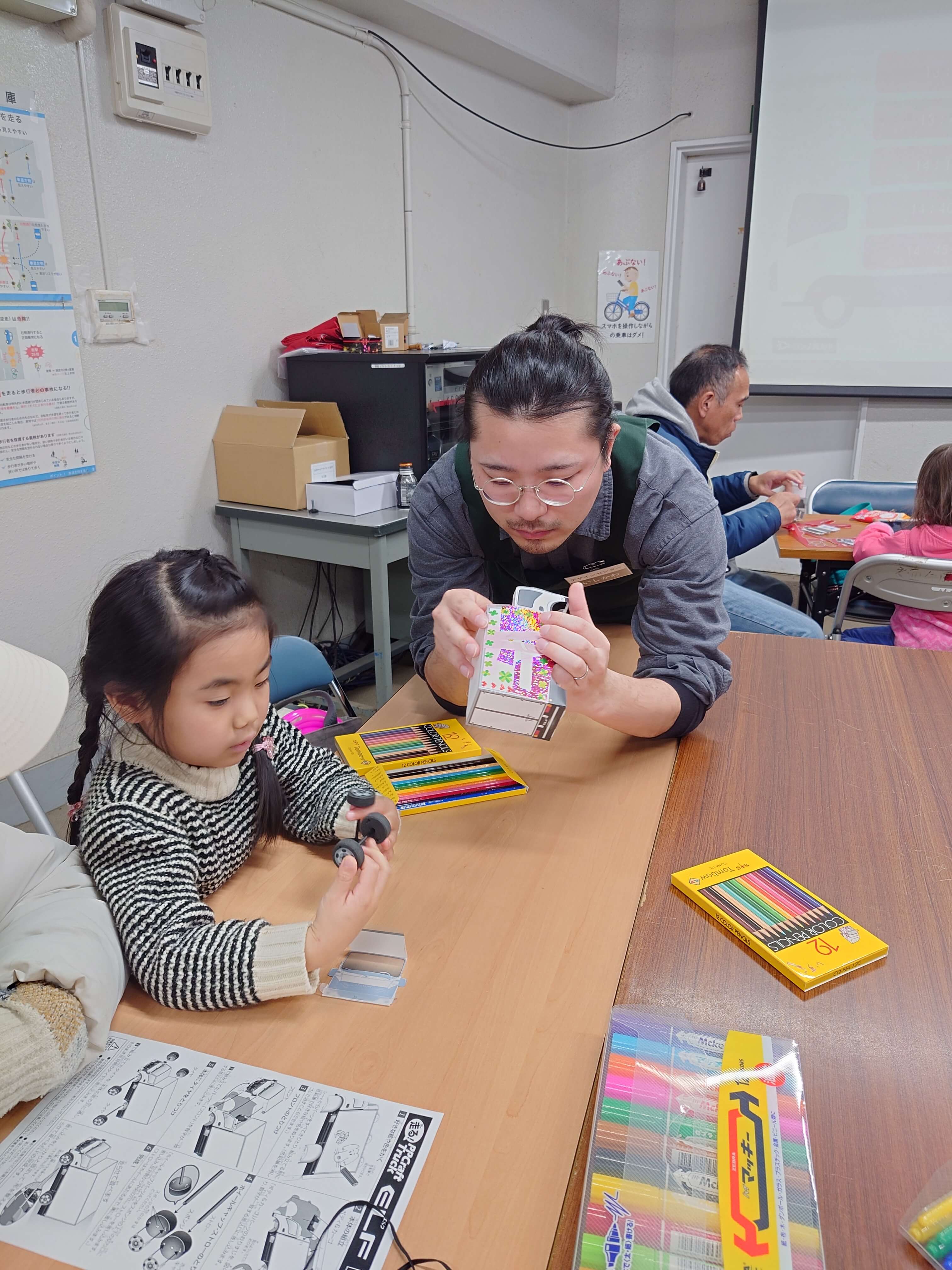 このデザイン教室きょうしつは、PPクラフト*のトラックに自由じゆうに絵えをかいたり色いろをぬったりして、世界せかいにひとつだけのオリジナルトラックをデザインするワークショップです。