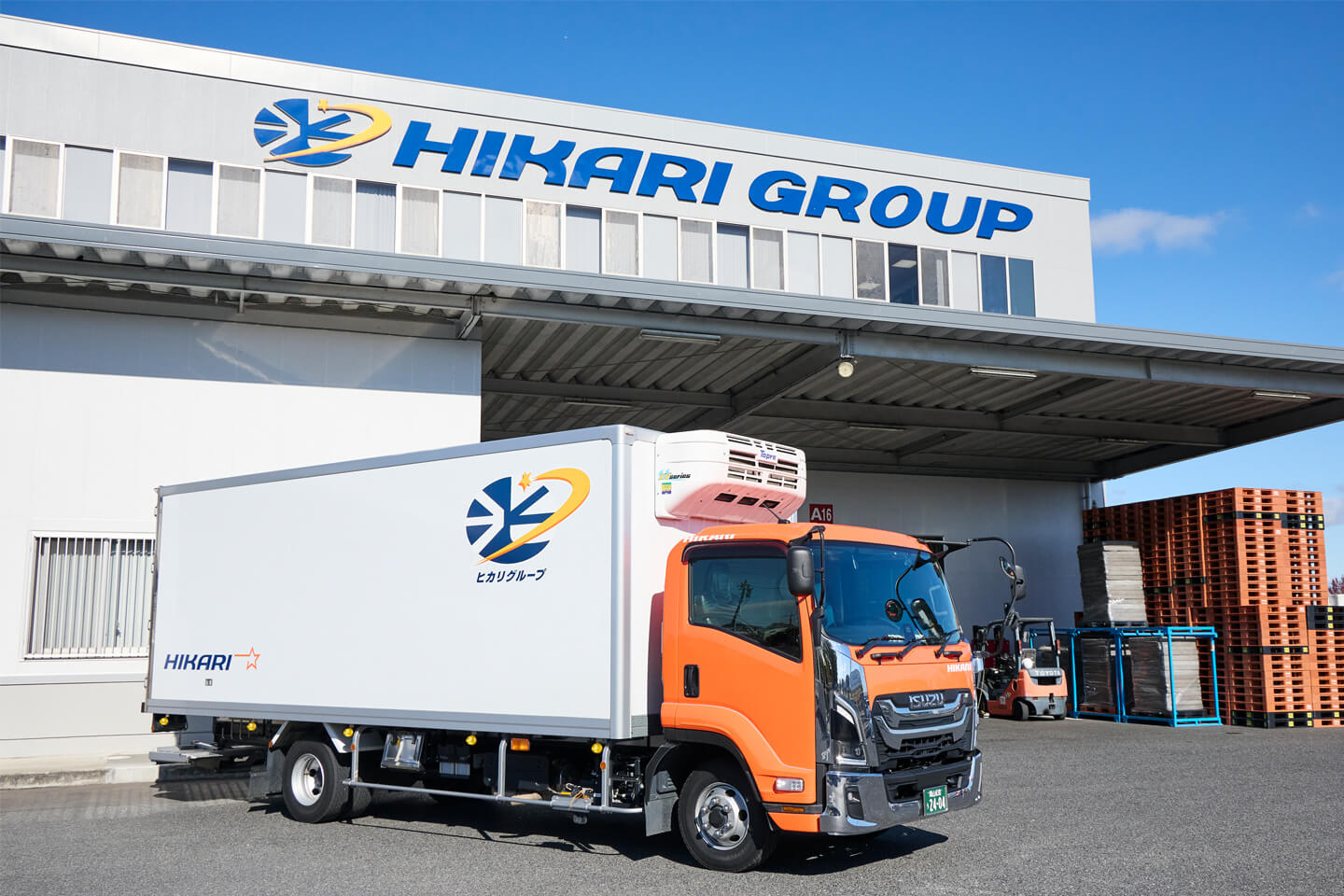 ヒカリ産業は、倉庫に届いた食品や食品の材料を仕分け、大きなトラックを使っていろいろなお店などにはこんでいる会社です。食品をはこぶときは