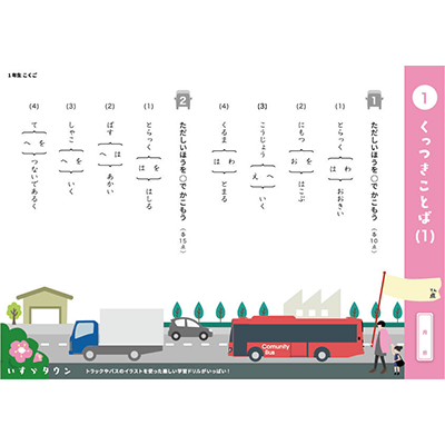 トラックやバスのイラストをたくさん使った楽しい学習ドリルです。おうちの人といっしょに取り組んでみよう!