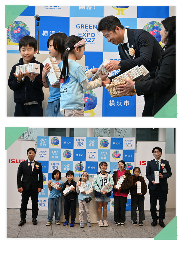いすゞの木製おもちゃを寄贈する式典もあわせて行いました。