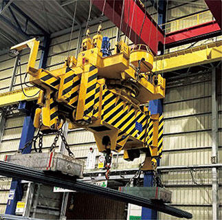 「輸送部門は、事業の合理化を目的にアウトソーシング化。2022年には物流部門も完全分社化しました。専門性や人材力の強化、設備投資によって、物流業務の効率化を図るためです。具体的には、圧延工場から倉庫へ製品を搬入する自動搬送システムを導入することで横持ち輸送を撤廃。さらに、各倉庫にリフティングマグネットクレーン(10トン吊り)を配置し、庫内の作業効率を高めました」